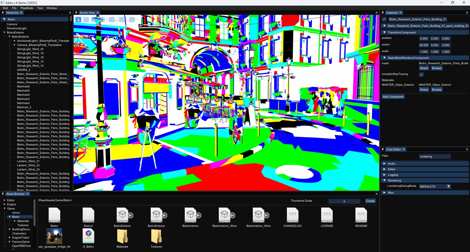 Meshlets debug view of the Amazon Lumberyard Bistro scene Link
