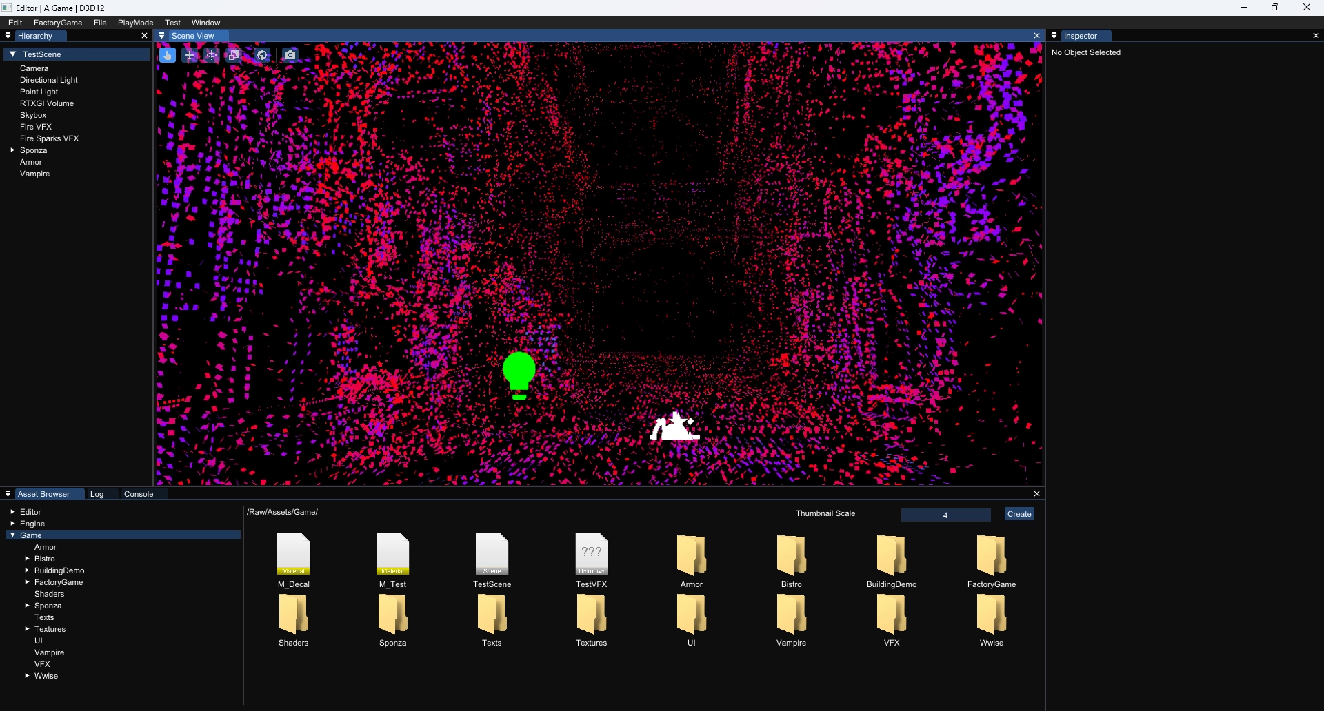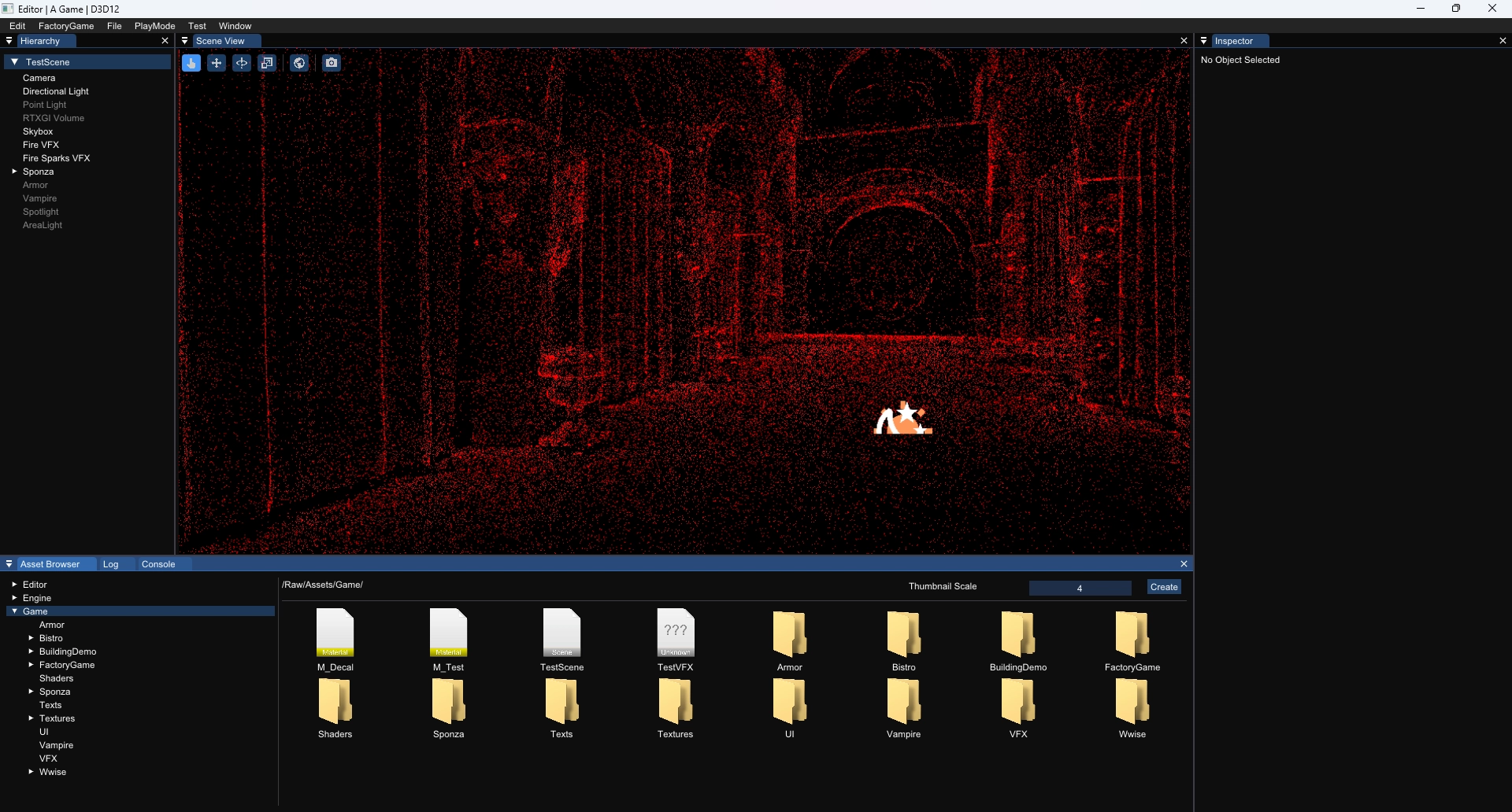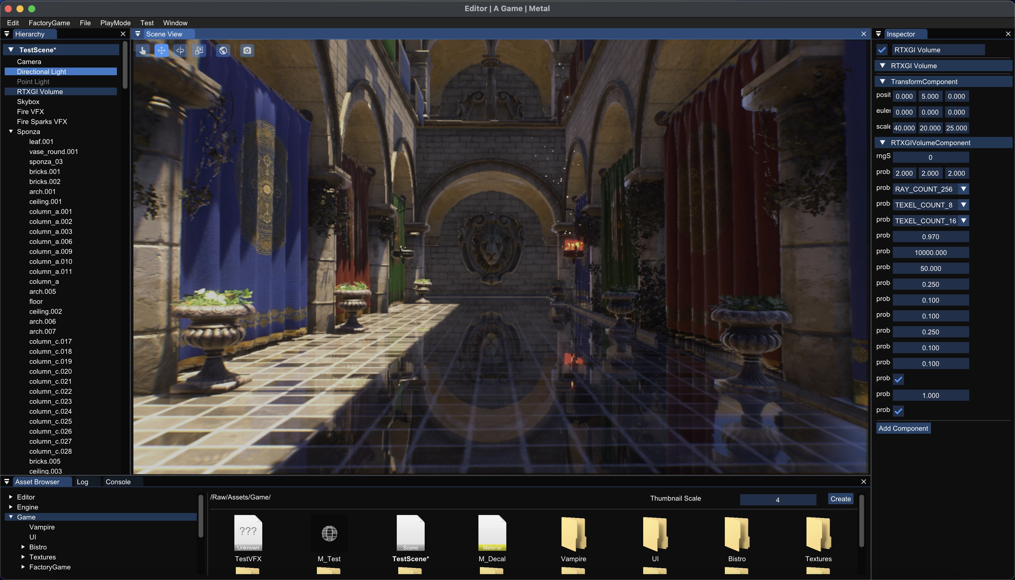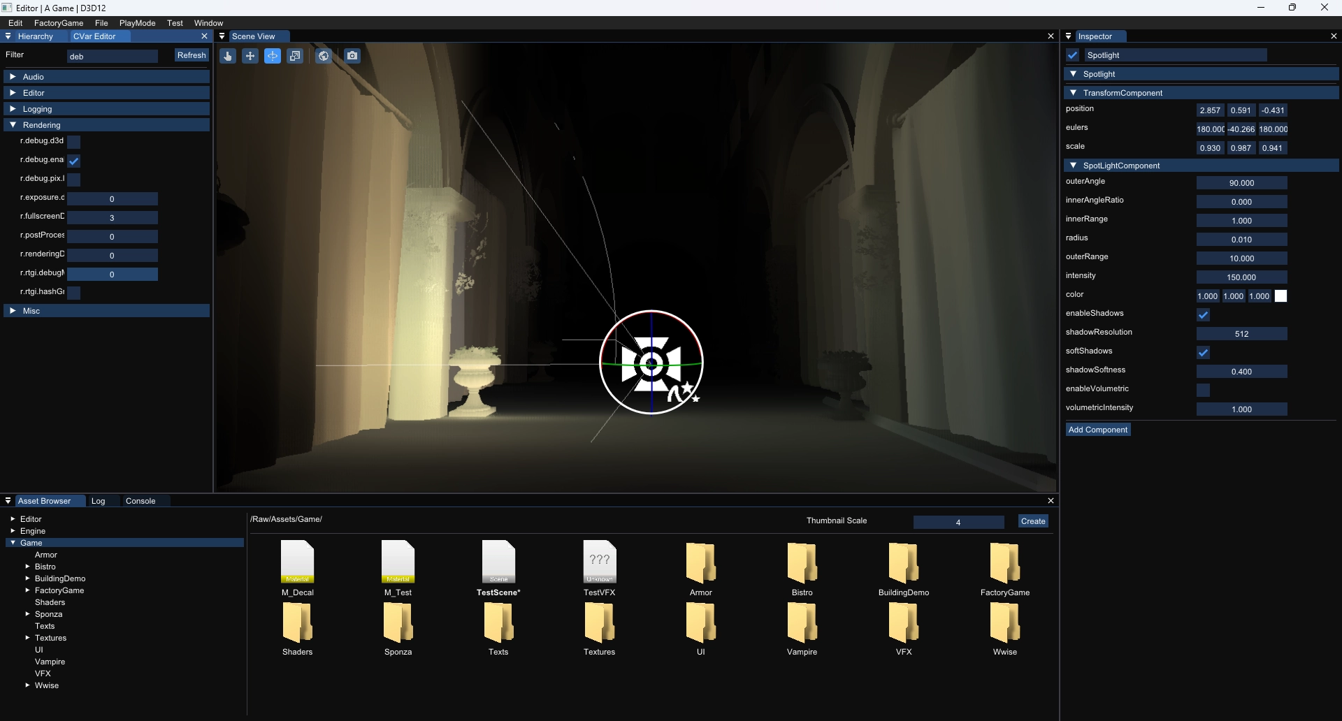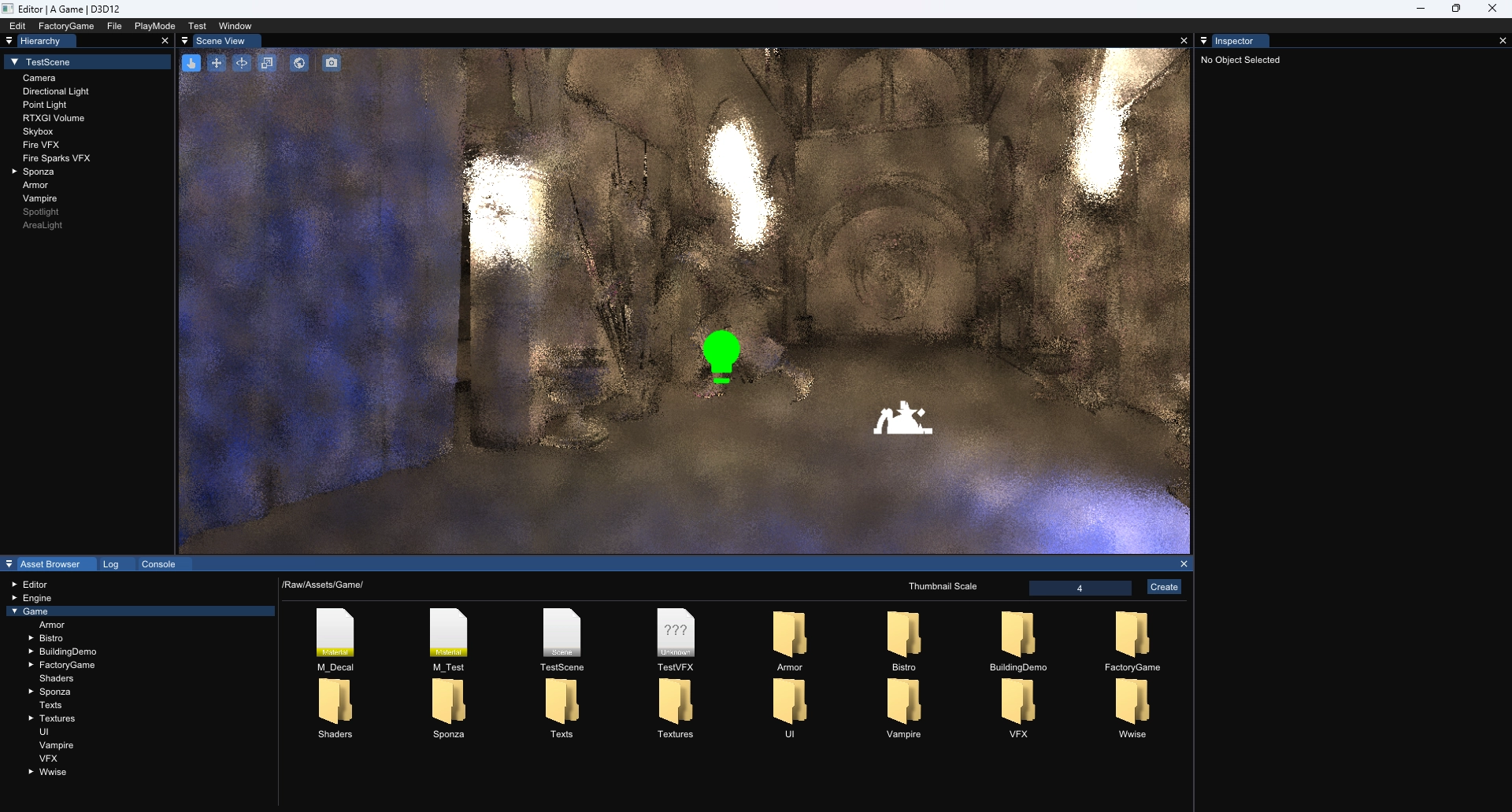 This is definitely not finished yet, and there are quite a few artifacts that still need to be fixed. But as I am trying to get by without any form of baking for as long as possible, I wanted to have some form of realtime indirect global illumination in the engine. I will need to get back to this system at some point to finish it because, as of now, the artifacts are too visible and distracting to be able to use this effect for anything serious. Also, I want to figure out how to support emissive surfaces because the authors decided not to support them in their implementation.